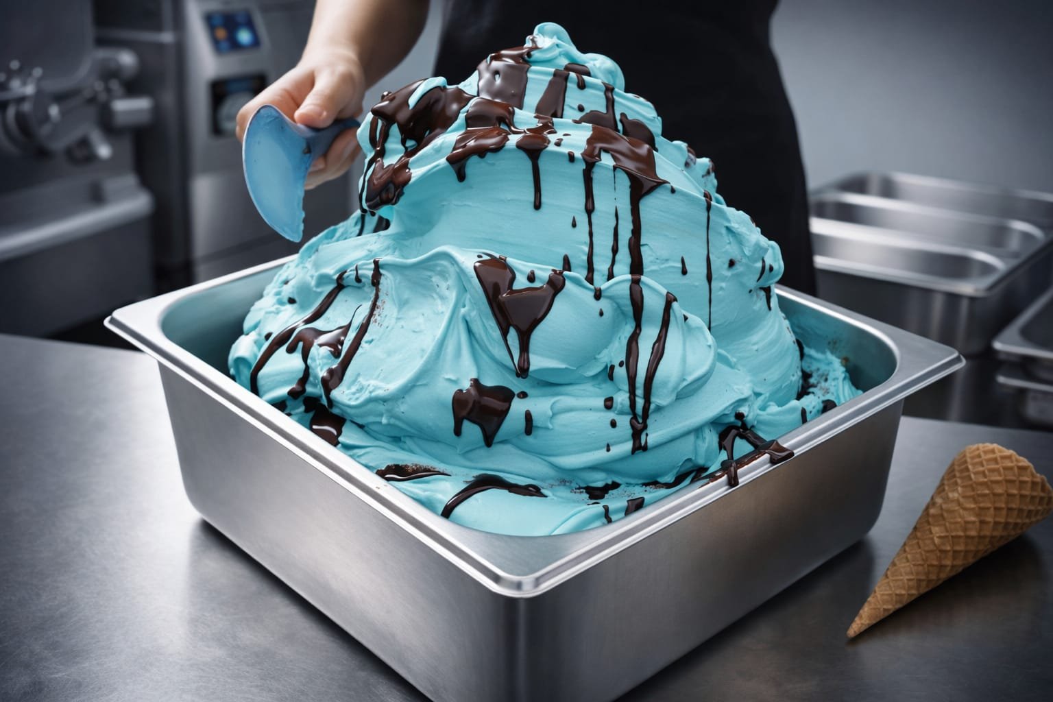 Base leite com blend de 3 cacau mesclado com variegato de Frutti do Bosco (amora e blue Barry)