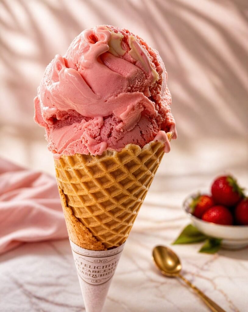 Base leite com creme de morango mesclado com creme de leite ninho italiano
